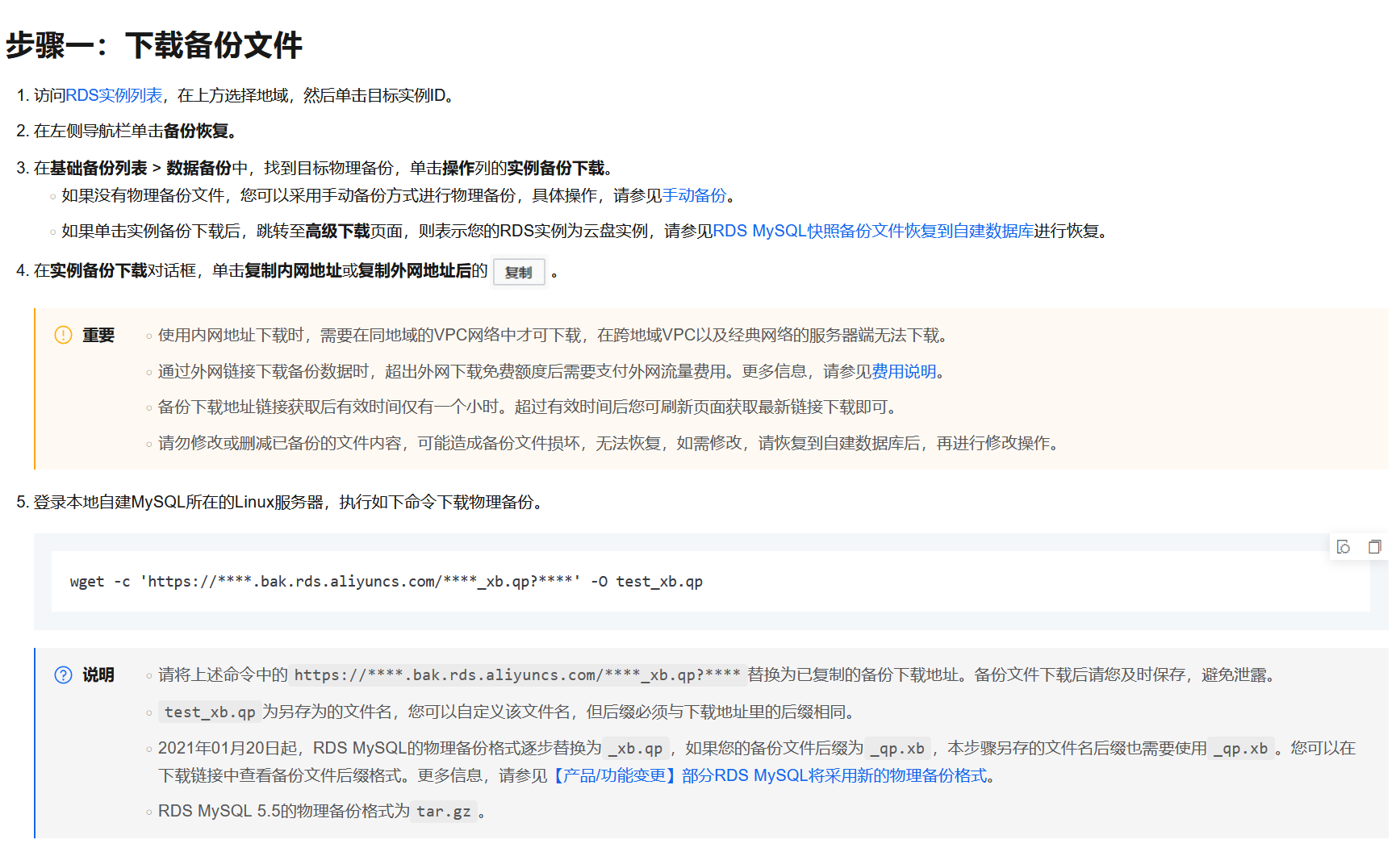 RDS MySQL物理备份用XtraBackup恢复到自建数据库_云数据库 RDS(RDS)-阿里云帮助中心