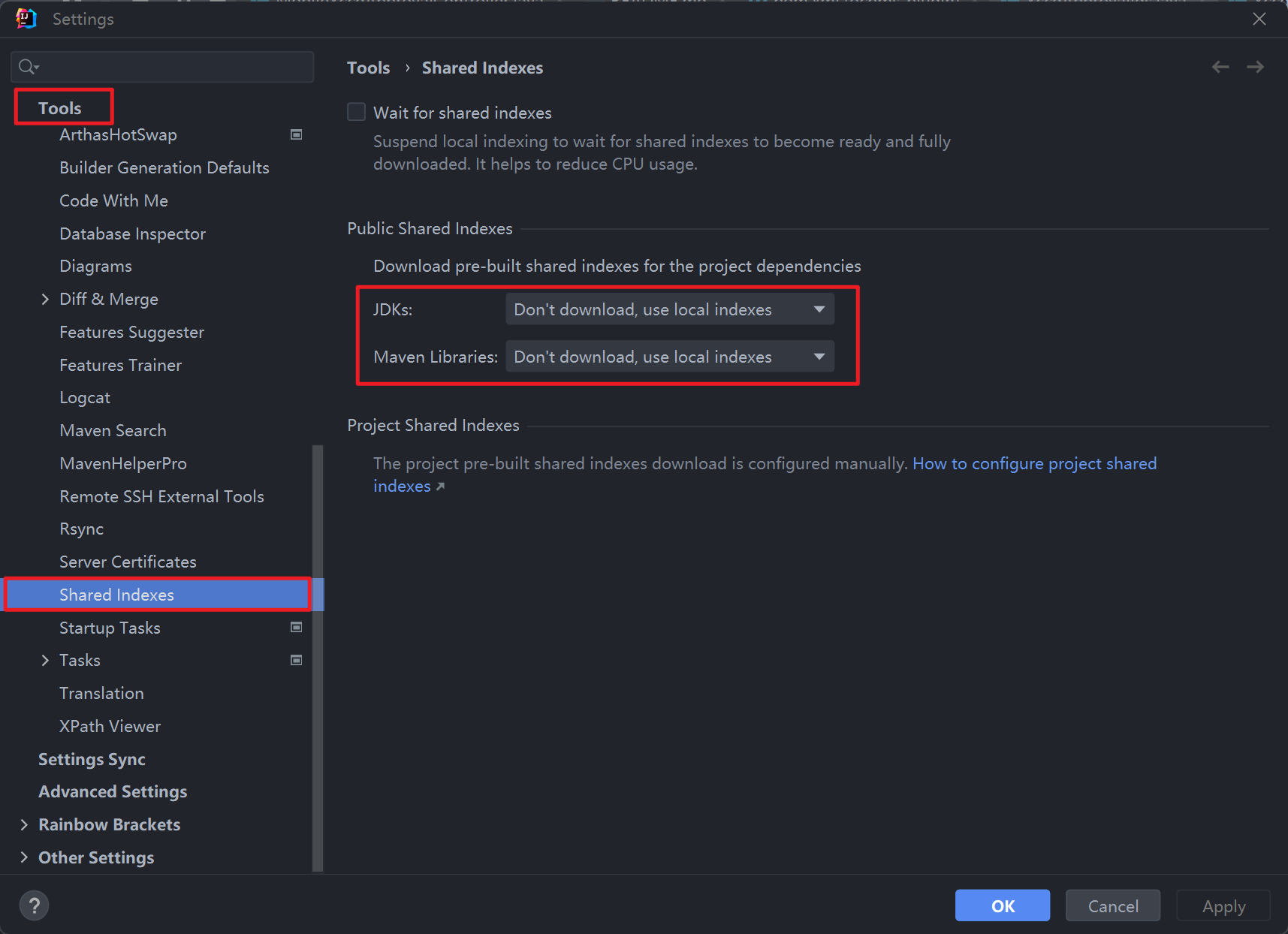 取消Download pre-built shared indexes Pre-built maven…自动下载