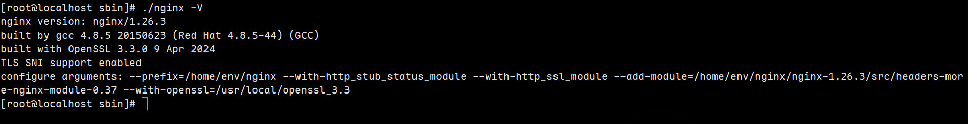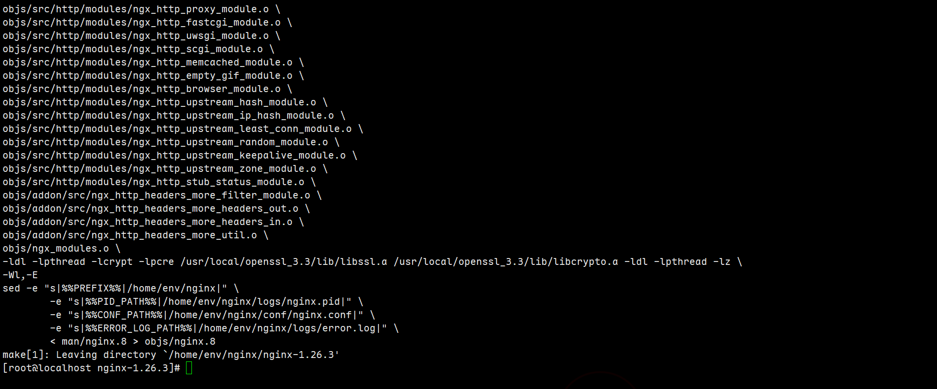 ./configure --prefix=/home/env/nginx --with-http_stub_status_module --with-http_ssl_module --add-module=/home/env/nginx/nginx-1.26.3/src/headers-more-nginx-module-0.37 |