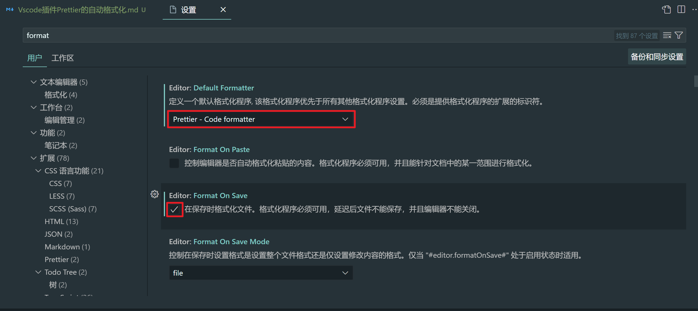 Prettier为默认代码格式化工具setting选项format,设置默认代码格式化工具为PrettierPrettier保存时自动格式化代码