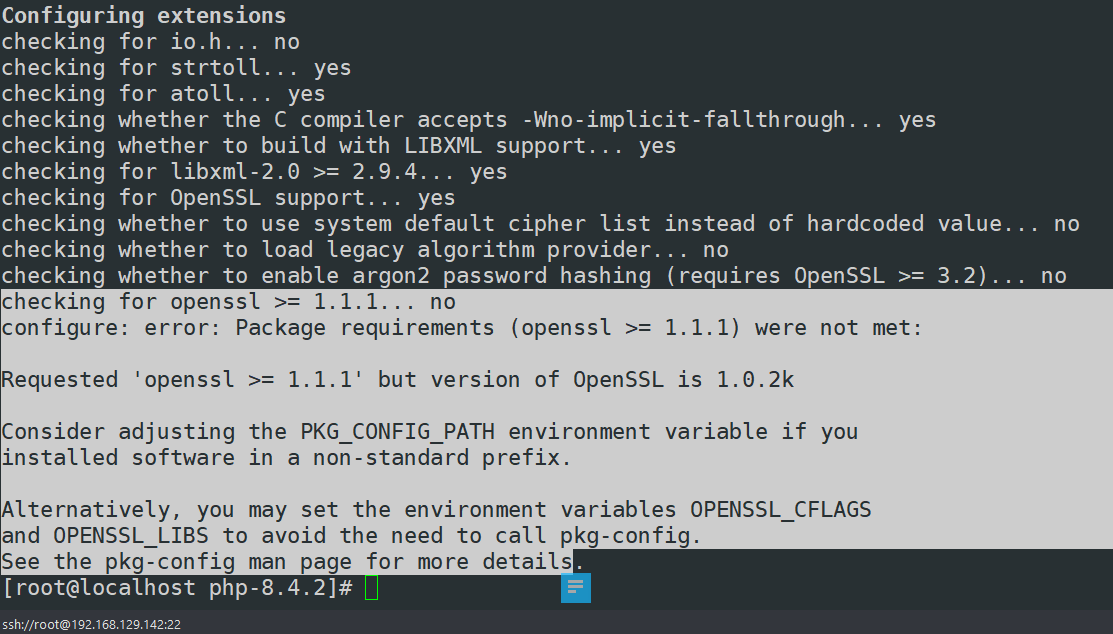 checking for openssl >= 1.1.1... no configure: error: Package requirements (openssl >= 1.1.1) were not met: