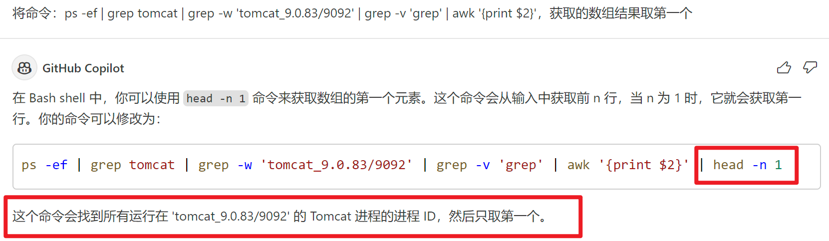 # 获取tomcat进程ID(其中[grep -w 'tomcat']代码中的tomcat需要替换为你的tomcat文件夹名) TomcatID=$(ps -ef | grep tomcat | grep -w 'tomcat_9.0.83/9092' | grep -v 'grep' | awk '{print $2}' | head -n 1)