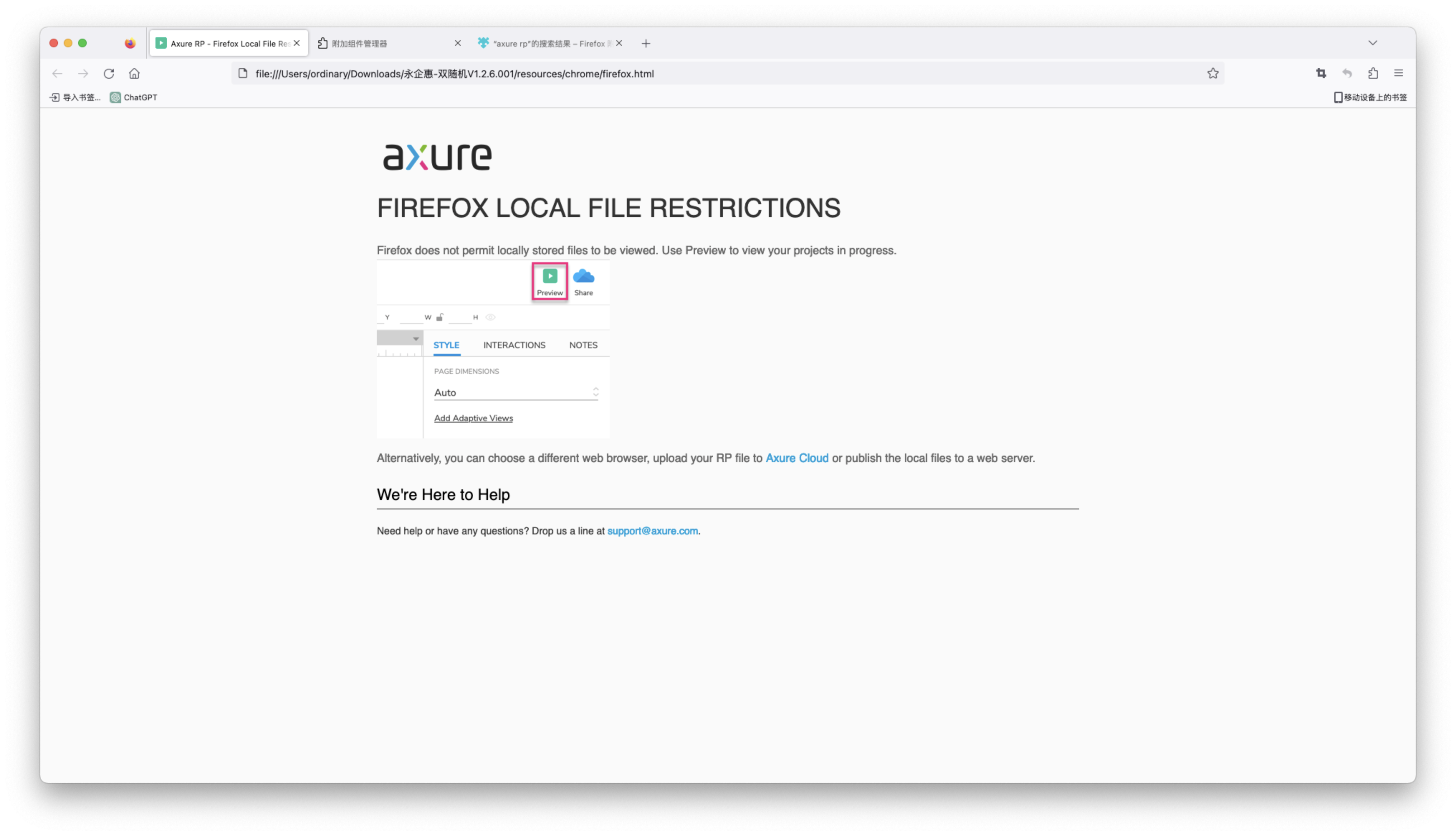 注意:火狐浏览器无插件支持预览Axure导出页面