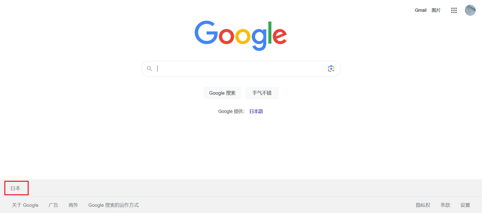 谷歌搜索IP定位:日本(服务器实例为某里云-日本节点)
