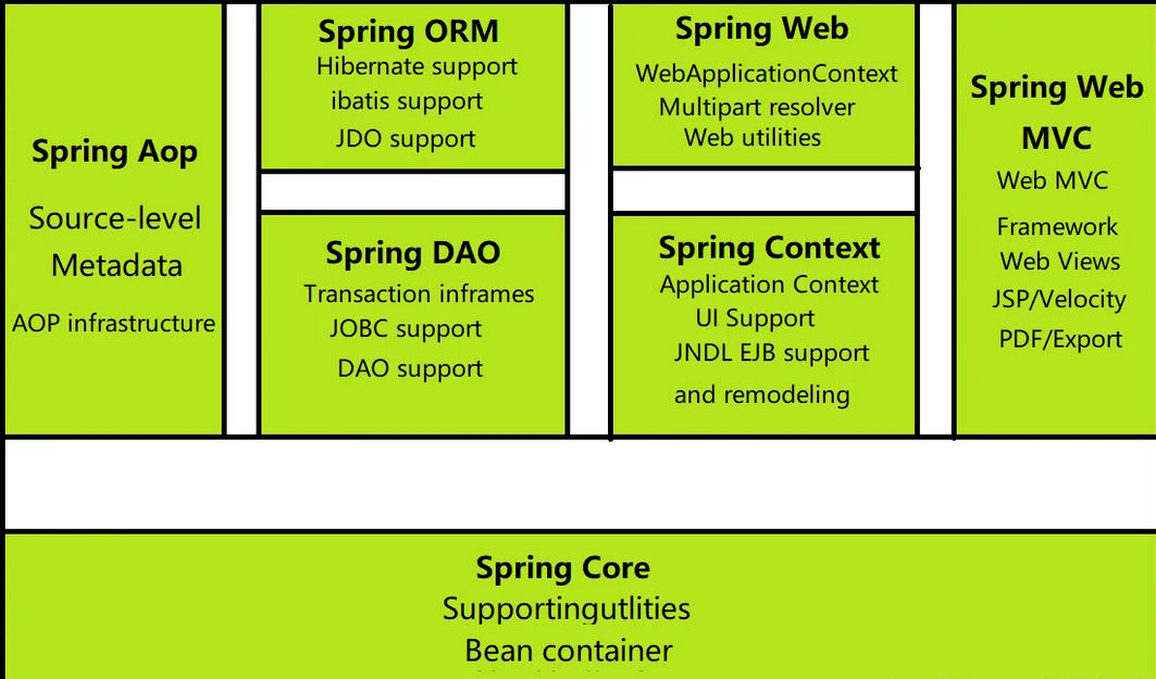 JDBC、DAO的抽象层,提供了有意义的异常层次结构实现,可用该结构来管理异常处理,和不同数据库提供商抛出的错误信息,异常层次结构简化了错误处理,并且极大的降低了需要编写的代码数量,比如打开和关闭链接。