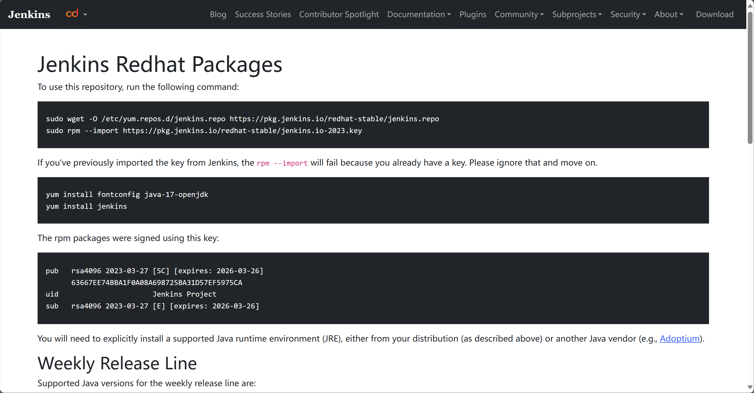 sudo rpm --import https://pkg.jenkins.io/redhat-stable/jenkins.io-2023.key |