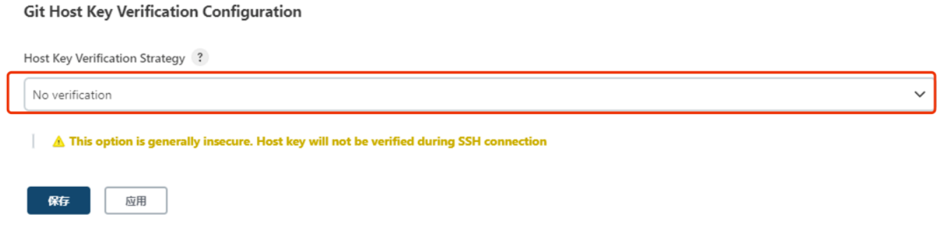 Manage jenkins --> Configure Global Security ,找到 Git Host Key Verification Configuration,按下图修改后保存。警告信息可以忽略