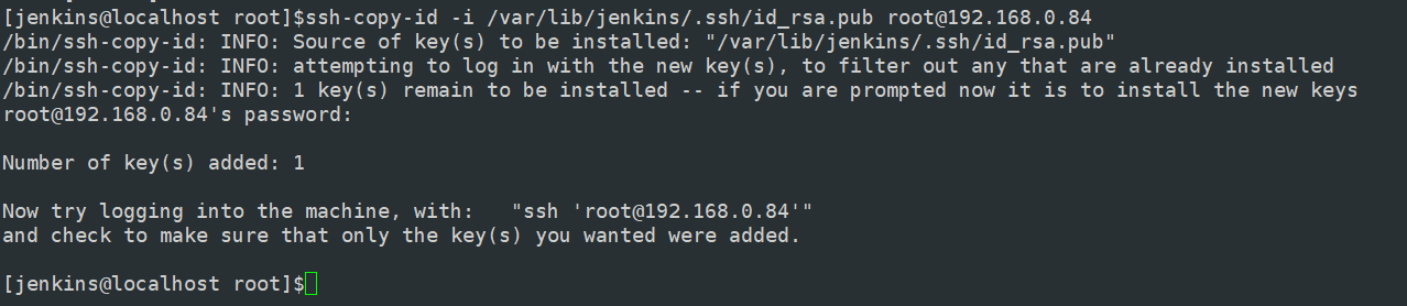 ssh-copy-id -i /var/lib/jenkins/.ssh/id_rsa.pub root@目标IP |