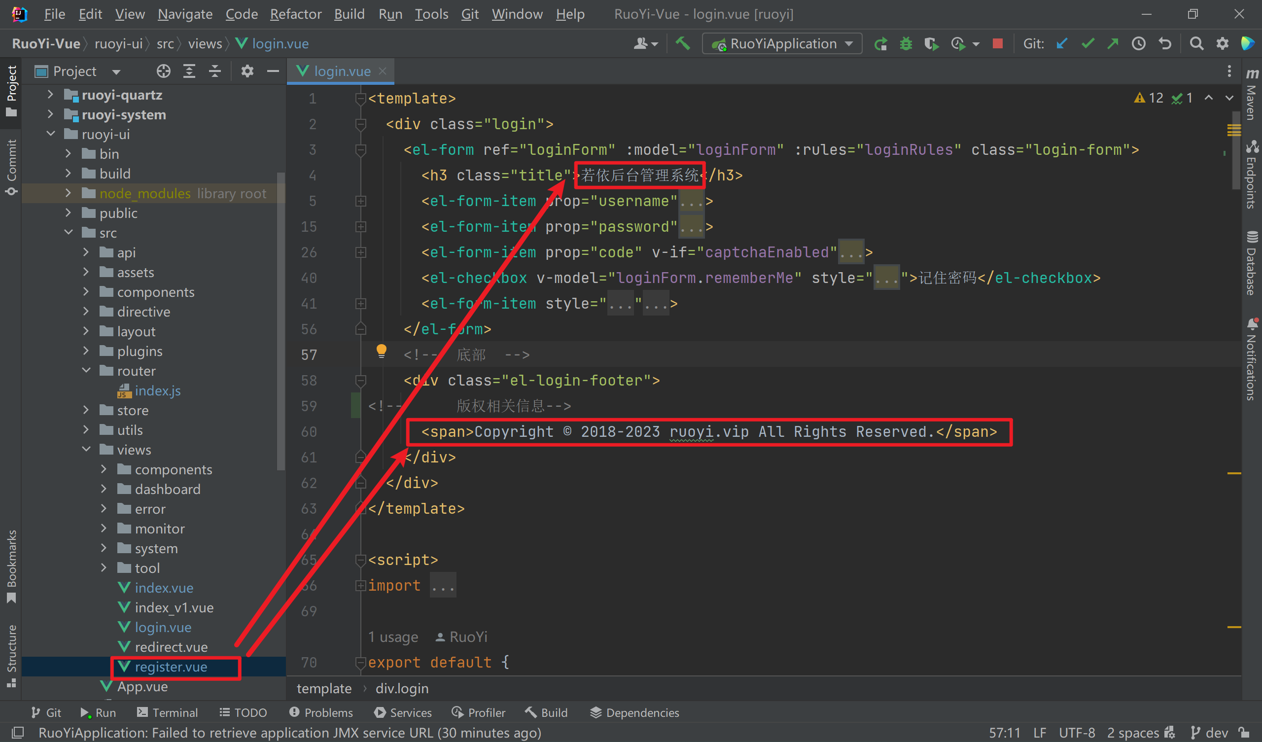 /** * 访问首页,提示语 */ @RequestMapping("/") public String index() { //return StringUtils.format("欢迎使用{}后台管理框架,当前版本:v{},请通过前端地址访问。", ruoyiConfig.getName(), ruoyiConfig.getVersion()); return ""; }