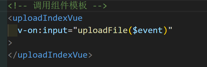 <uploadIndexVue v-on:input="uploadFile($event)" > </uploadIndexVue>