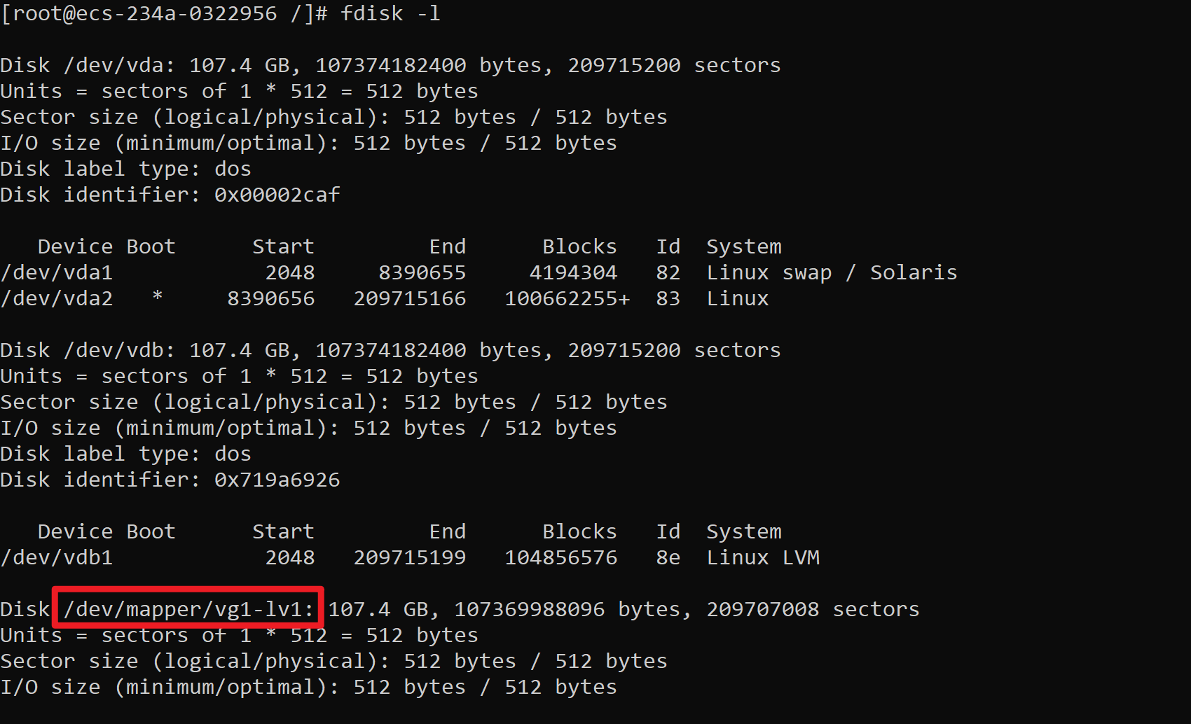 Device Boot Start End Blocks Id System /dev/sdb1 2048 41943039 20970496 8e Linux LVM