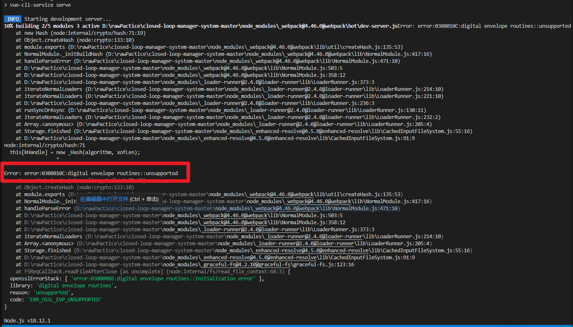 参考博客:nodejs新版本引起的:digital envelope routines::unsupported