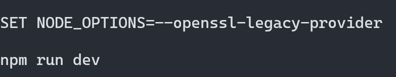 SET NODE_OPTIONS=--openssl-legacy-provider - 在输入命令: