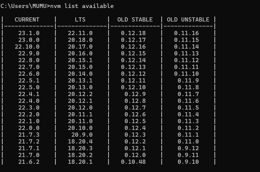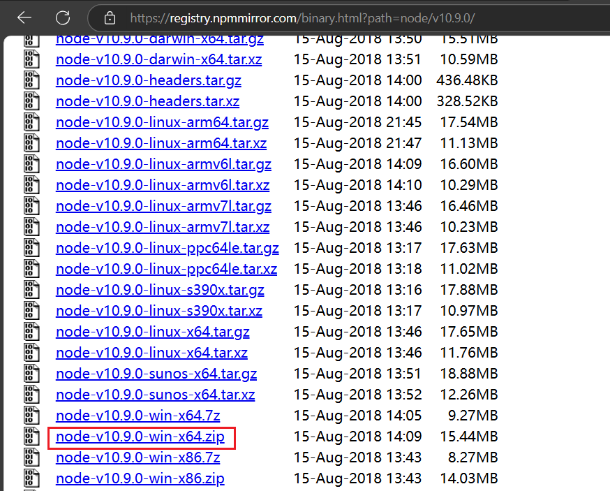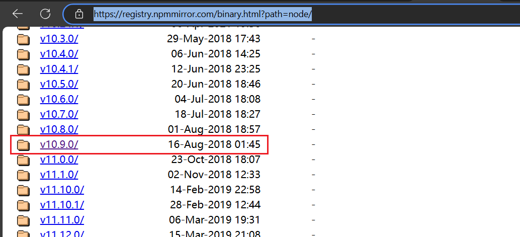 查询可用node版本中不存在比较老的node版本,需要通过手动下载旧的node版本进行安装。