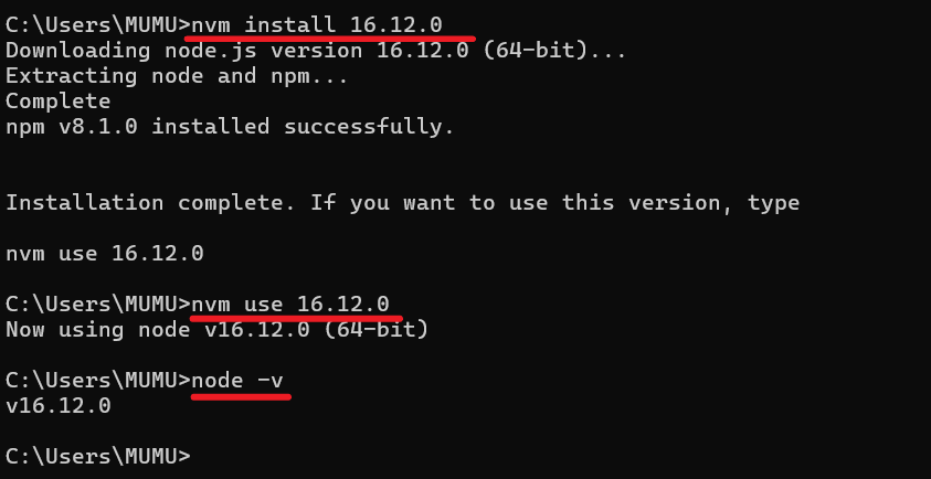 nvm install 16.12.0 |