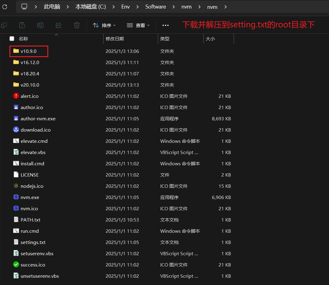 建议按照nvm下载的node文件夹规范命名