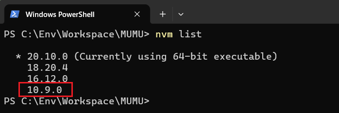 查看当前可用node环境