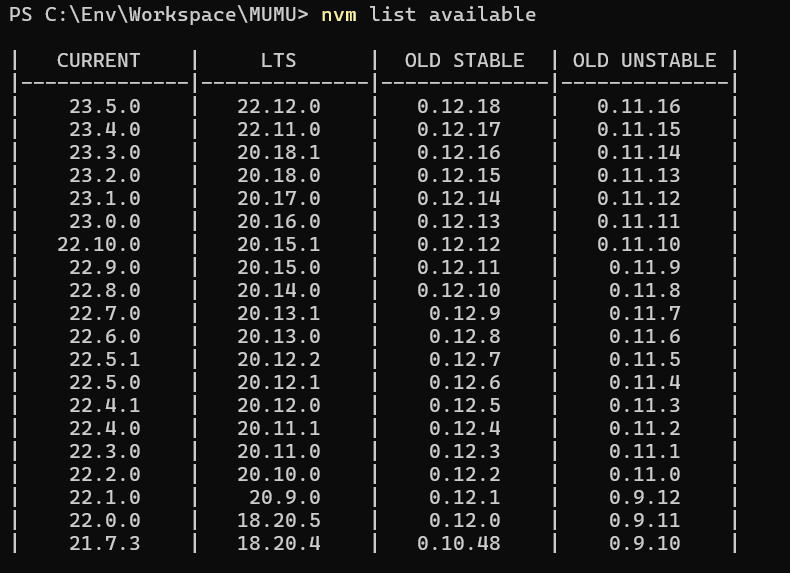 nvm list available |