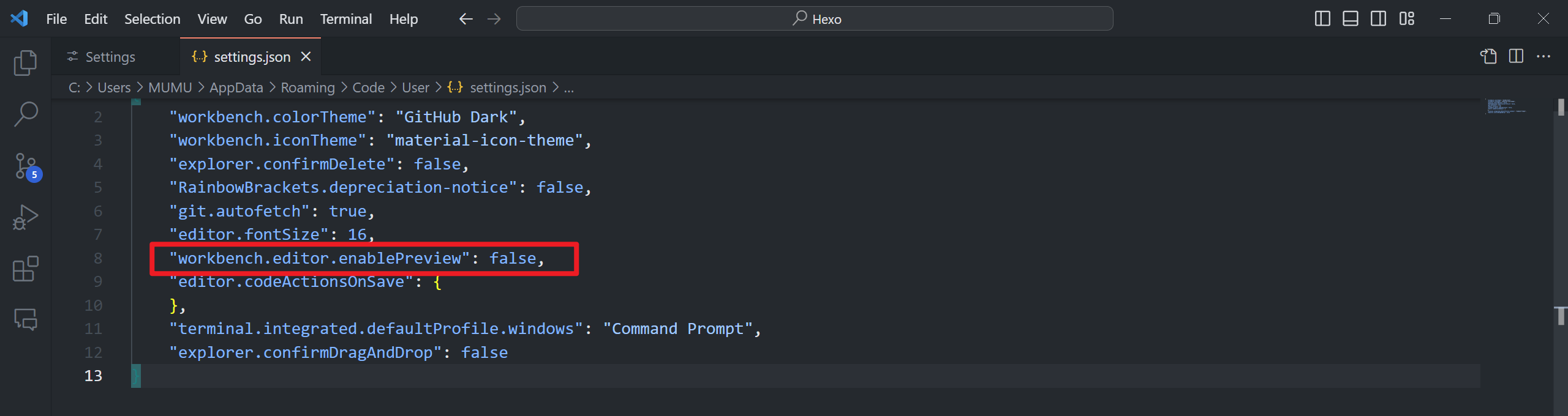 关闭vscode的预览模式如何让 VSCode 打开文件始终在新标签页打开settings.json文件添加配置:"workbench.editor.enablePreview": false,修改vscode的setting.json文件vscode如何打开settings.json