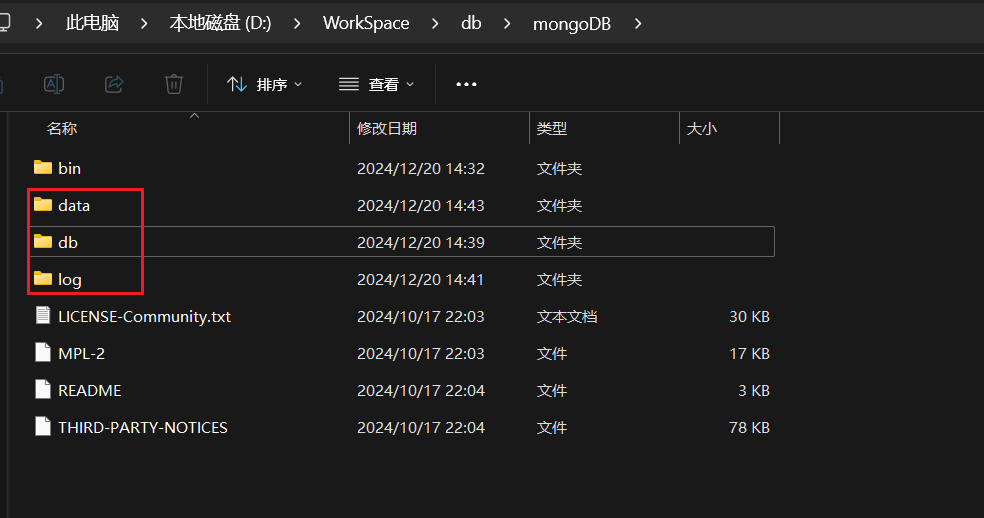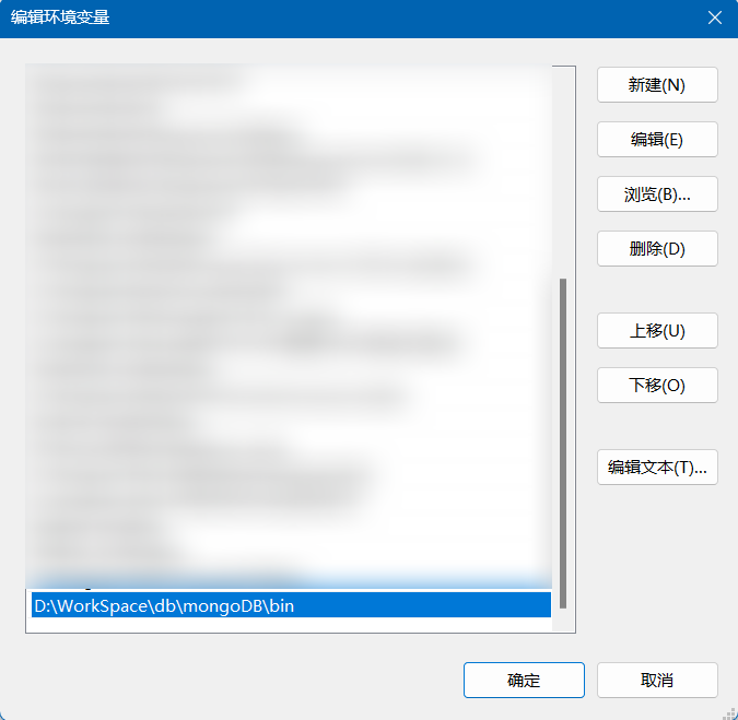 环境变量path添加D:\WorkSpace\db\mongoDB\bin