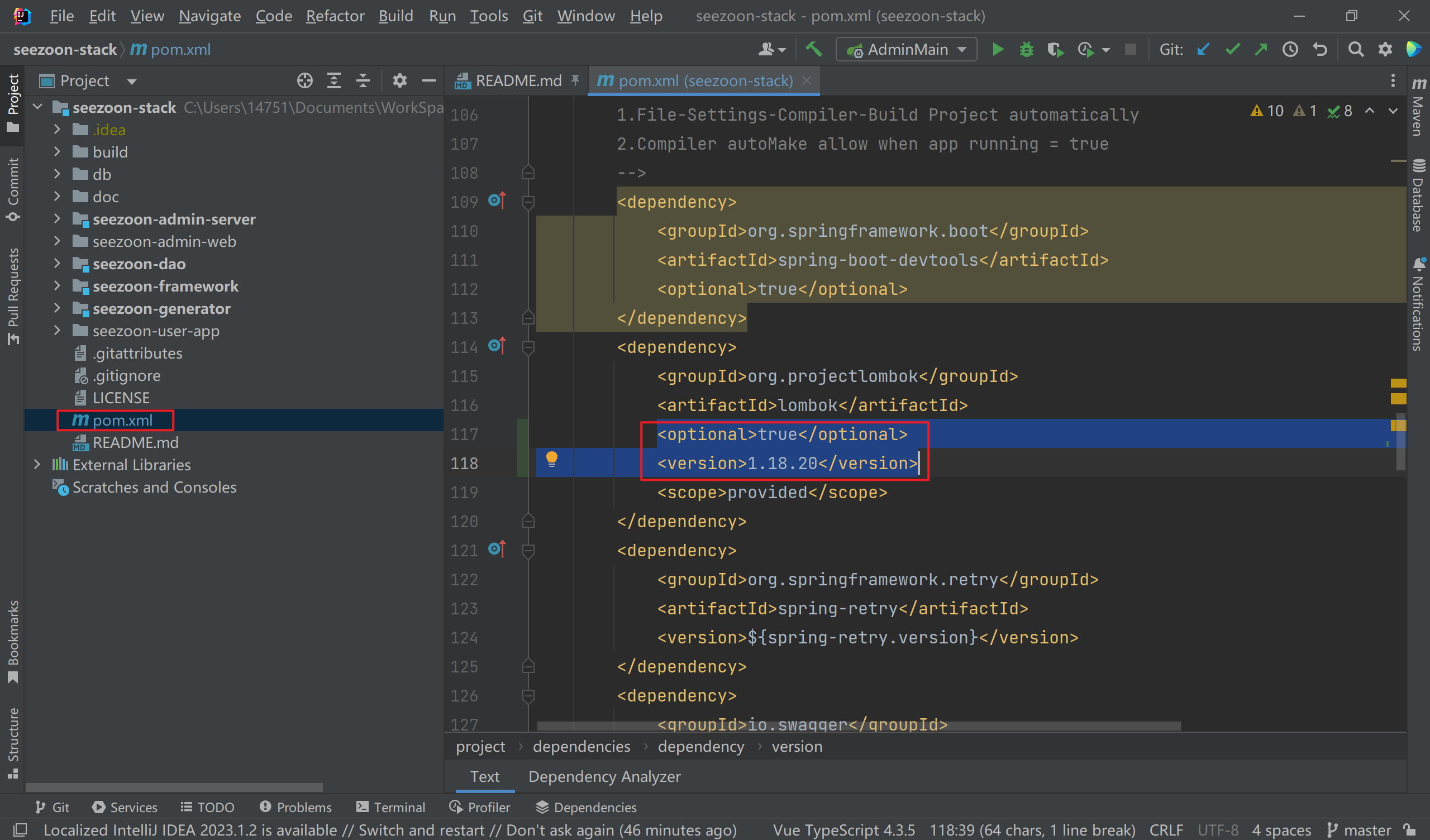 lombok的版本与jre不兼容 ,需要在pom.xml中改变Lombok的版本,一般springboot中lombok的配置都是不带版本的,此时我们需要手动添加一下版本号
