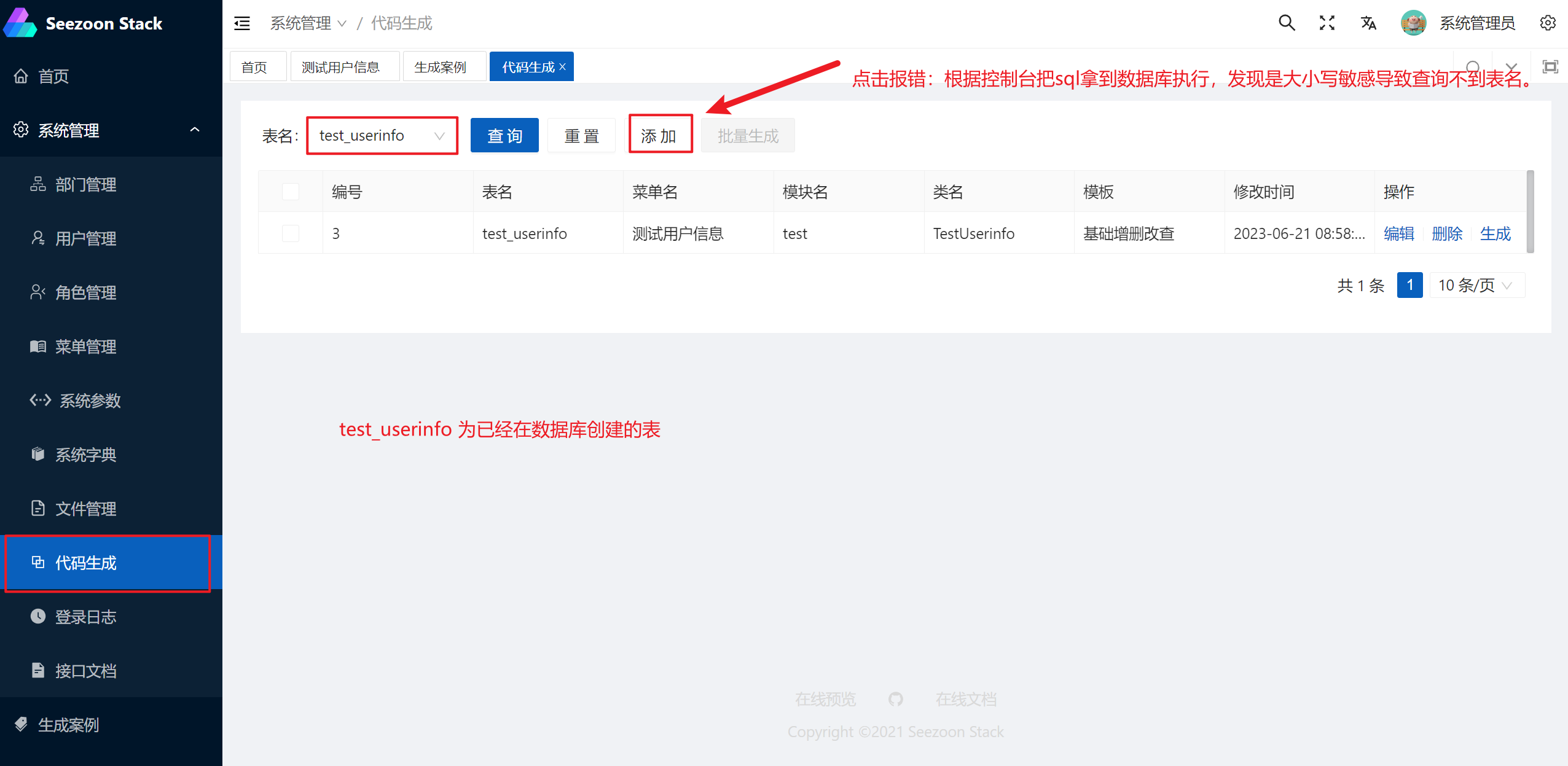 正常操作代码生成功能点击添加(这里未展示报错截图!)