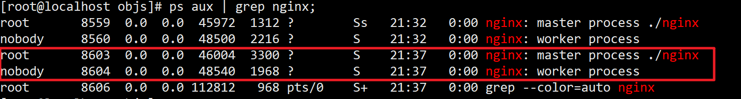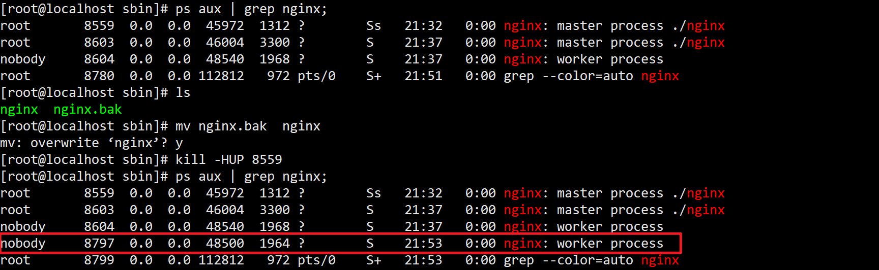 (当前步骤可忽略,仅表示当前旧nginx进程依然存在)