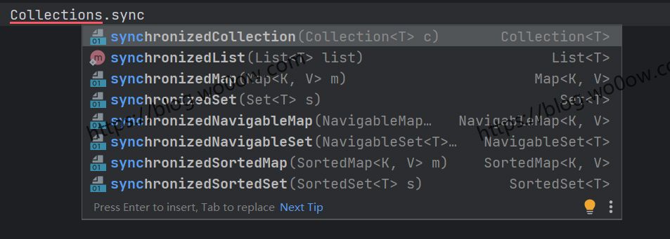 - Collections是一个类,一个辅助工具类,可以使不安全的集合类变为安全的