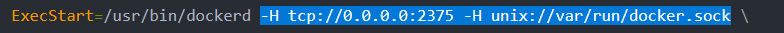 -H tcp://0.0.0.0:2375 -H unix://var/run/docker.sock |