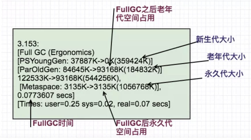 以上gc日志中,在发生fullGC之时,整个应用的堆占用以及GC时间。为了更加精确需多次收集,计算平均值。或者是采用耗时最长的一次FullGC来进行估算。上图中,老年代空间占用在93168kb(约93MB),以此定为老年代空间的活跃数据。则其他堆空间的分配,基于以下规则来进行。