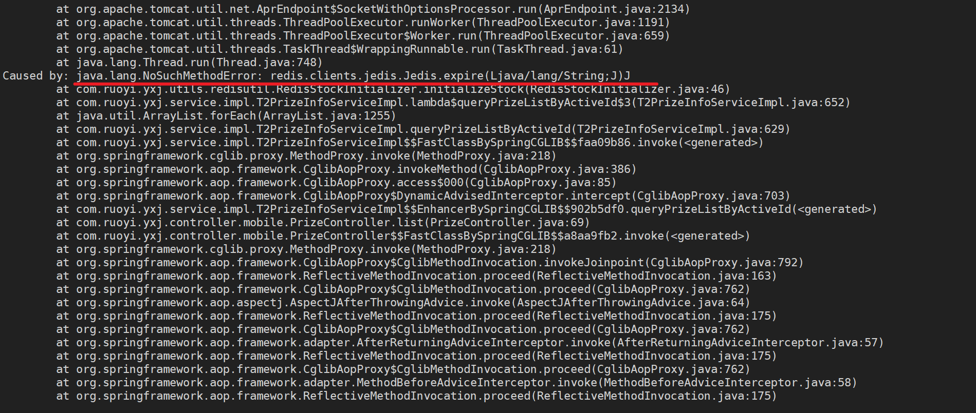 错误日志:java.lang.NoSuchMethodError: redis.clients.jedis.Jedis.expire(Ljava/lang/String;J)J