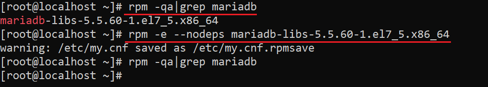 rpm -qa|grep mariadb |