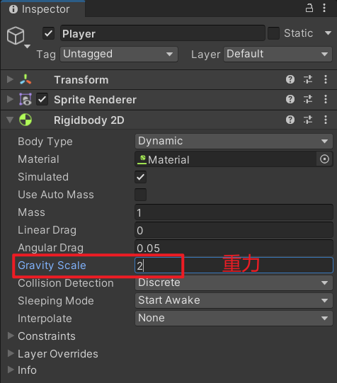 Gravity Scale是 Rigidbody 2D 组件的一个属性,用于控制物体受重力影响的程度。