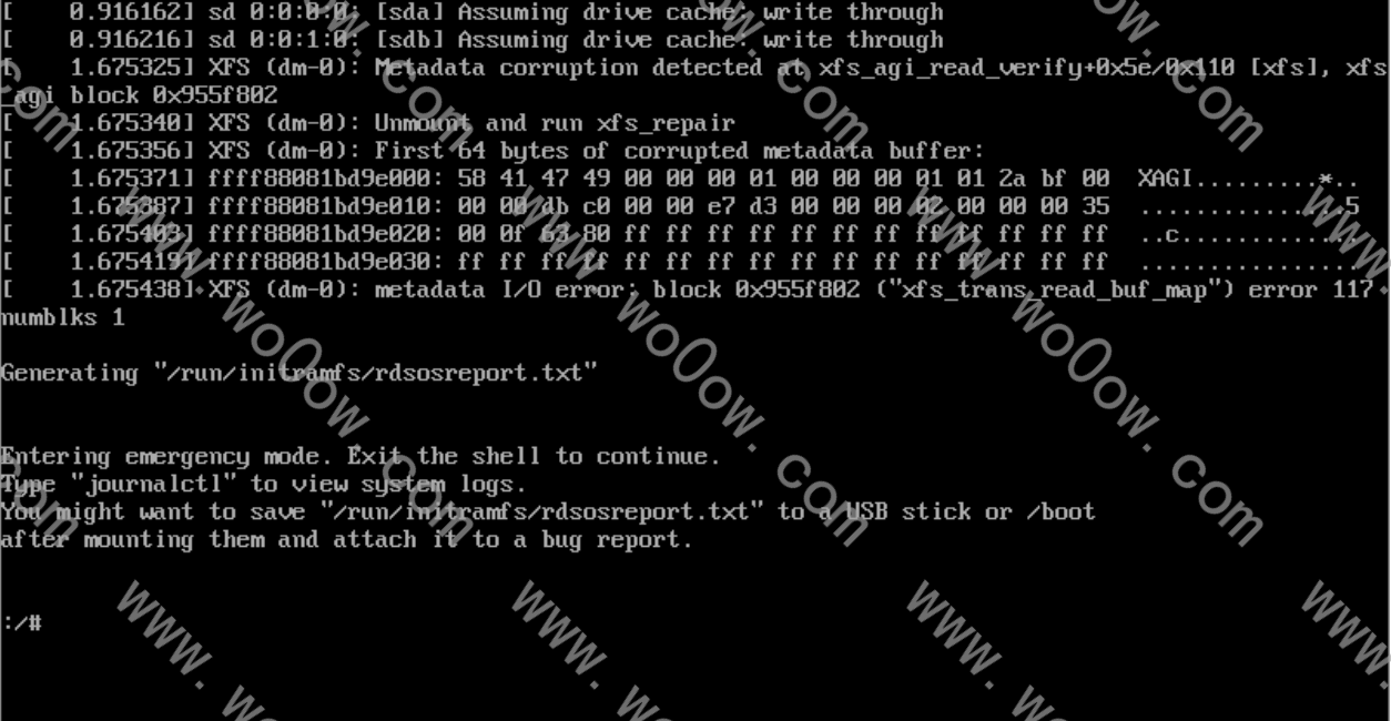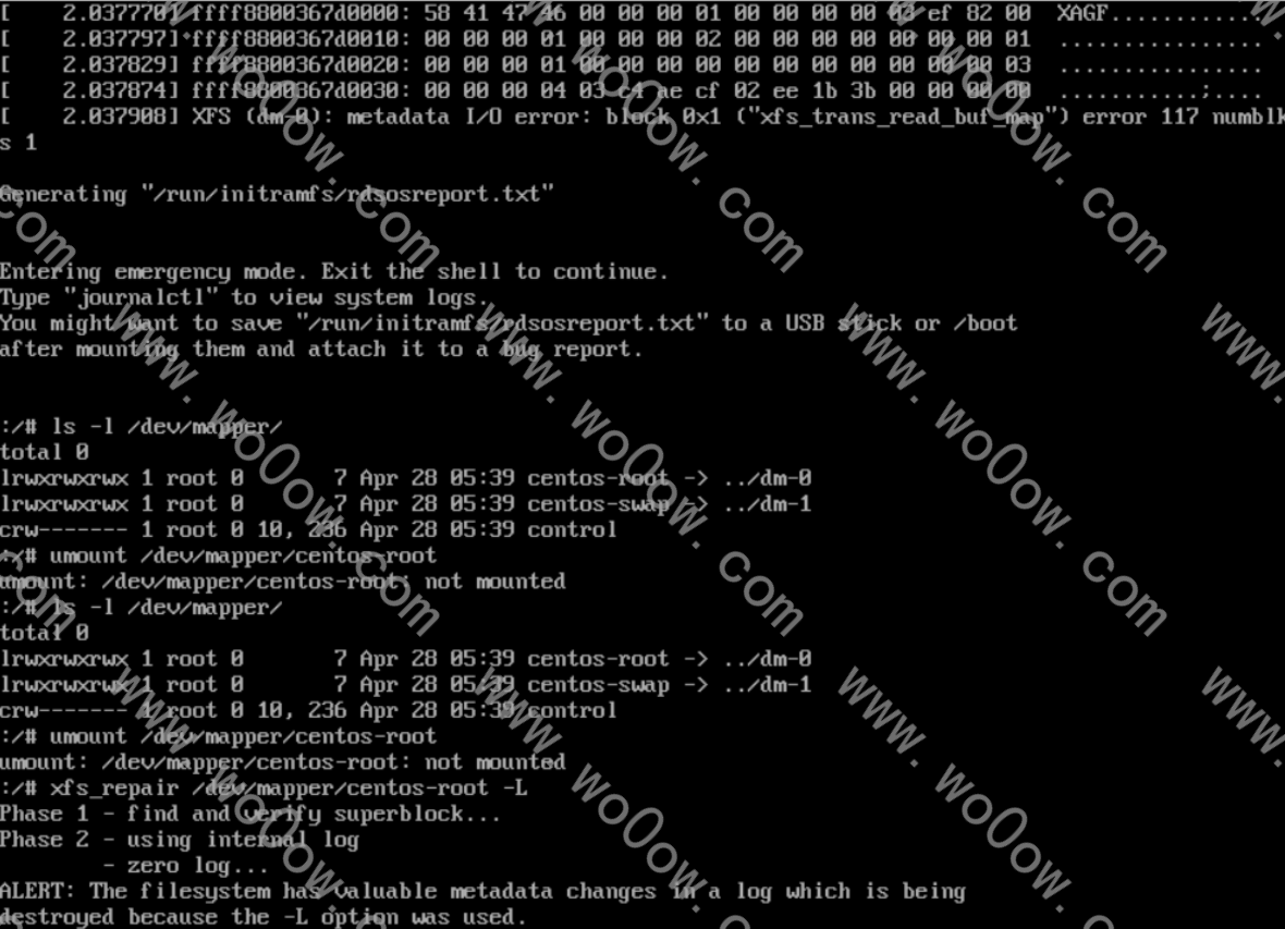 操作系统启动时报错:error:block 0x955f802 (“xfs_trans_read_buf_map”) error 117 mumblks 1